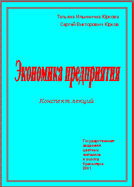 Учебное издание Татьяна Ильинична Юркова Сергей Викторович Юрков ЭКОНОМИКА ПРЕДПРИЯТИЯ Конспект лекций Редактор Т. А. Ермолаева Изд. лицензия ЛР № 020374 от 22.01.97 Подписано в печать 30.05.2001 Формат 60×84/16 Офсетная печать Усл. печ. л. 7,0 Уч. изд. л. 7,0 Тираж 500 Заказ 76 Редакционно-издательский отдел ГАЦМиЗ 660025, Красноярск, ул. Вавилова, 66 а Отпечатано ООО "Аспазия" г. Красноярск, ул. Семафорная, 321 |